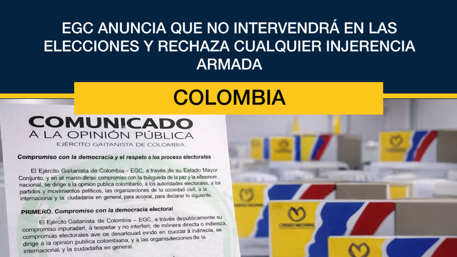 En medio de la creciente preocupación por posibles presiones de grupos armados ilegales de cara a las elecciones en Colombia, el Ejército Gaitanista de Colombia (EGC) hizo público un comunicado en el que declara su compromiso de no intervenir en el proceso electoral.