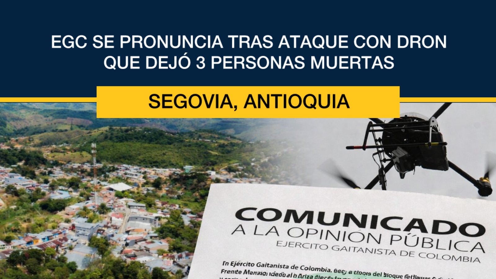 Un dron cargado con explosivos cayó en la vereda La Jagua, zona rural del municipio de Segovia (Antioquia), causando la muerte de tres civiles: María Cecilia Silva y sus dos hijos. El hecho, ocurrido el jueves 26 de febrero, ha generado conmoción en la región y reaviva la preocupación por la intensificación del conflicto armado en el nordeste antioqueño.
